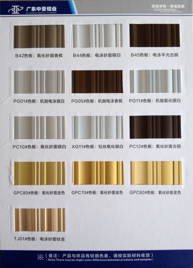 1、公司的產(chǎn)品主要有:鋁合金陽極氧化型材、電泳涂裝型材、粉末噴涂型材、氟碳漆噴涂型材、木紋型材、穿條隔熱型材、澆注隔熱型材、以及各種工業(yè)用鋁合金型材。